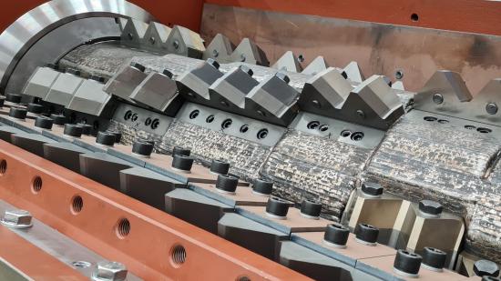 Shred rubber blocks below 80mm into rubber blocks below 15mm,and 99% of rubber blocks will be separated from steel wire after shredding, thus, the wires and rubber are still in a mixture but not stick together.